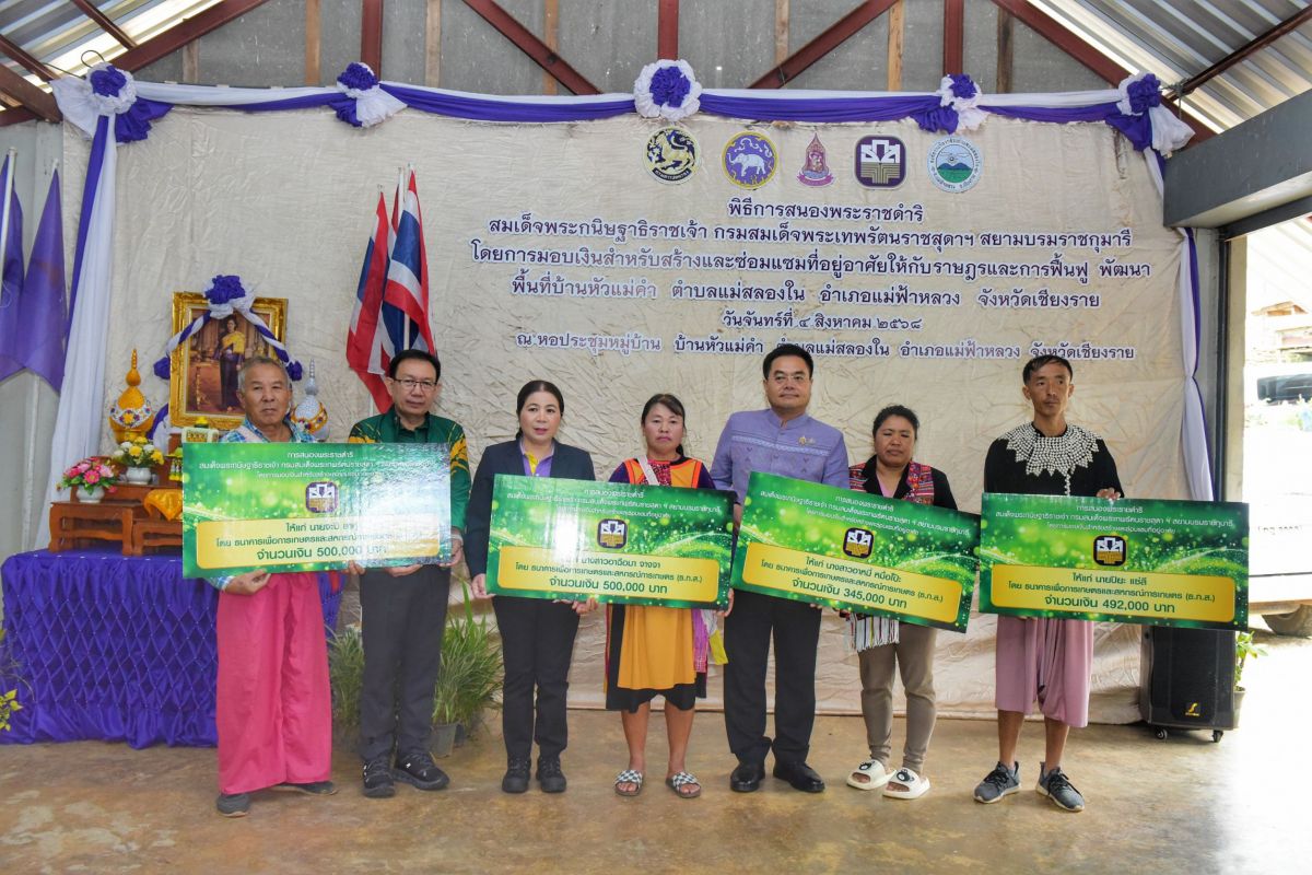 เข้าร่วมพิธีมอบเงินสำหรับสร้างและซ่อมแซมที่อยู่อาศัยให้กับราษฎรและการฟื้นฟูพัฒนาพื้นที่บ้านหัวแม่คำ วันที่ 05 สิงหาคม 2568 [ 13:13 น. ] เข้าชม 41 ครั้ง พิมพ์ ภาพกิจกรรม เข้าร่วมพิธีมอบเงินสำหรับสร้างและซ่อมแซมที่อยู่อาศัยให้กับราษฎรและการฟื้นฟูพัฒนาพื้นที่บ้านหัวแม่คำ วันที่ 4 สิงหาคม 2568 ฝ่ายบริหารนำโดยนายปิยะเดช เชิงพิทักษ์กุล นายกองค์การบริหารส่วนตำบลแม่สลองใน เข้าร่วมพิธีมอบเงินสำหรับสร้างและซ่อมแซมที่อยู่อาศัยให้กับราษฎรและการฟื้นฟูพัฒนาพื้นที่บ้านหัวแม่คำ ....โดยมีนางสุพร ตรีนรินทร์ เลขาธิการ กปร. นายศุภรัชต์ อินทราวุธ รองเลขาธิการ กปร. นายสุทัศน์ ตั้งพิพัฒน์พงศ์ ผู้อำนวยการกองประสานงานโครงการพื้นที่ 3 นางสาวรุ่งรัตน์ วงษ์จู ผู้อำนวยการกลุ่มประสานงานพื้นที่ 31 และเจ้าหน้าที่กองประสานงานโครงการพื้นที่ 3 พร้อมทั้งหน่วยงานที่เกี่ยวข้อง ร่วมพิธีการสนองพระราชดำริ สมเด็จพระกนิษฐาธิราชเจ้า กรมสมเด็จพระเทพรัตนราชสุดา ฯ สยามบรมราชกุมารี โดยการมอบเงินสำหรับสร้างและซ่อมแซมที่อยู่อาศัยให้กับราษฎรและการฟื้นฟู พัฒนาพื้นที่บ้านหัวแม่คำ ตำบลแม่สลองใน อำเภอแม่ฟ้าหลวง จังหวัดเชียงราย ณ หอประชุมหมู่บ้าน บ้านหัวแม่คำ ตำบลแม่สลองใน อำเภอแม่ฟ้าหลวง จังหวัดเชียงราย อัลบั้มภาพ