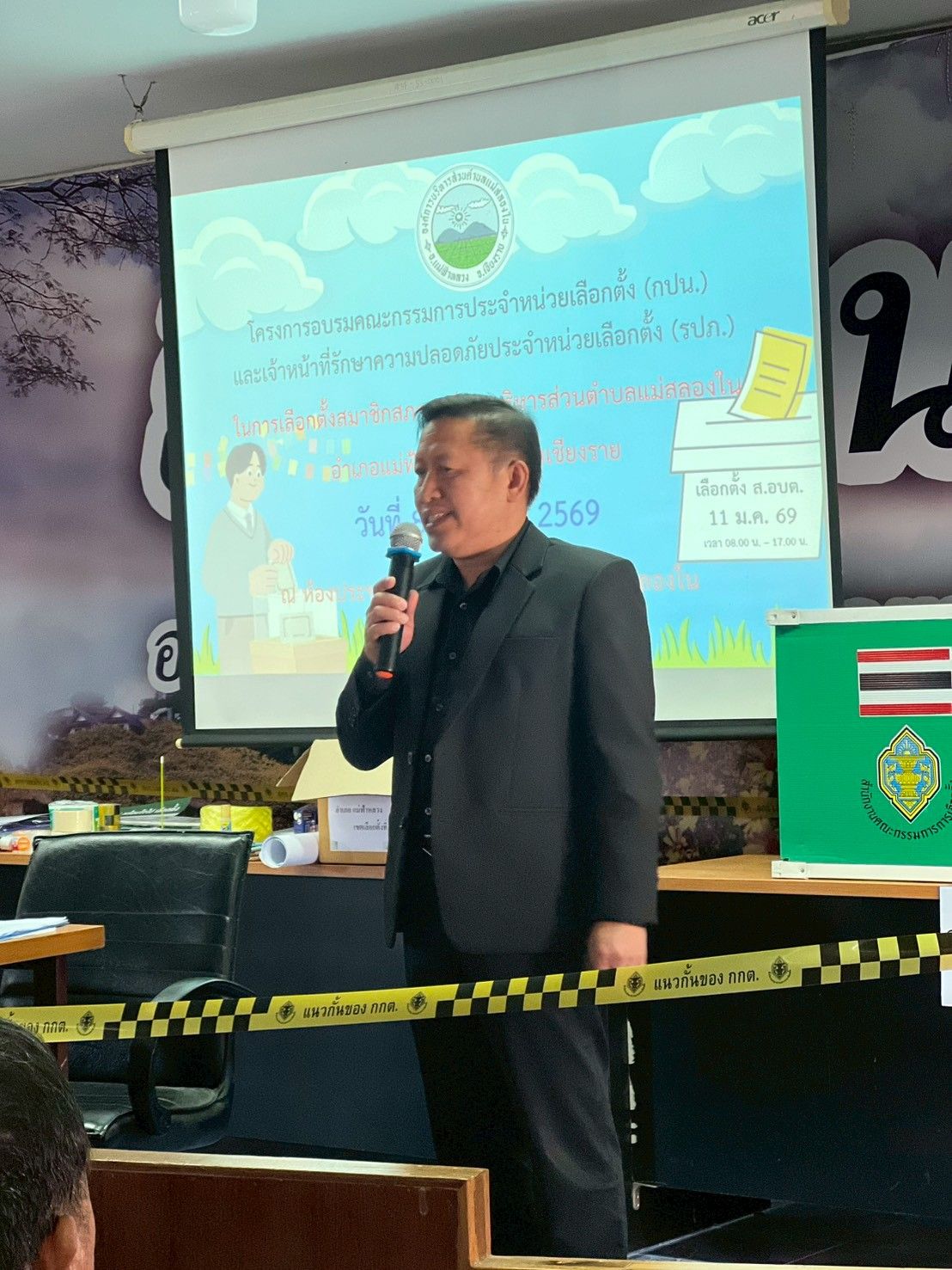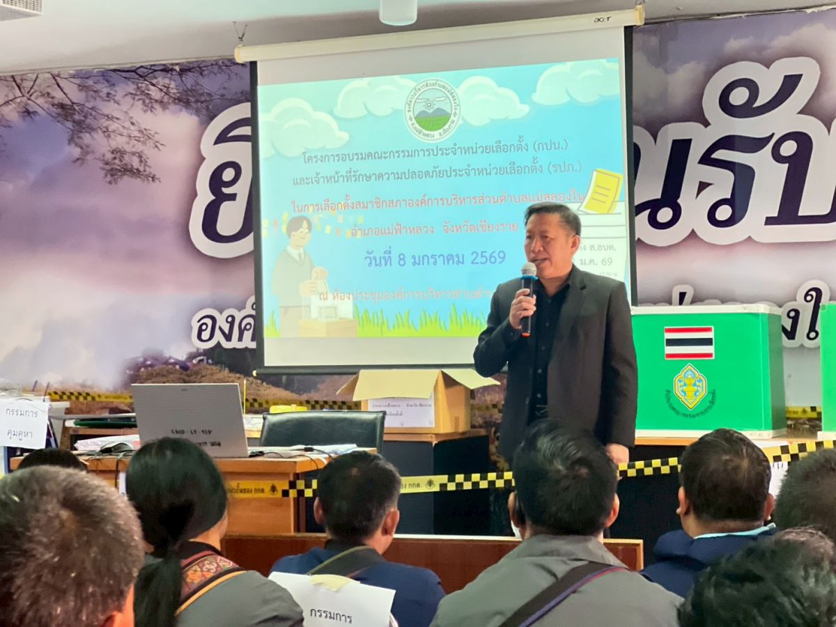 อบรมคณะกรรมการประจำหน่วยเลือกตั้ง (กปน.) และเจ้าหน้าที่รักษาความปลอดภัย (รปภ.) ประจำหน่วยเลือกตั้งที่ 15 -28 ตำบลแม่สลองใน วันที่ 08 มกราคม 2569 [ 18:00 น. ] เข้าชม 28 ครั้ง พิมพ์ ภาพกิจกรรม อบรมคณะกรรมการประจำหน่วยเลือกตั้ง (กปน.) และเจ้าหน้าที่รักษาความปลอดภัย (รปภ.) ประจำหน่วยเลือกตั้งที่ 15 -28 ตำบลแม่สลองใน #อบรมคณะกรรมการประจำหน่วยเลือกตั้ง (กปน.) และเจ้าหน้าที่รักษาความปลอดภัย (รปภ.) ประจำหน่วยเลือกตั้งที่ 15 -28 ตำบลแม่สลองใน.วันที่ 8 มกราคม 2569 เวลา 09.00 น. ศูนย์ประสานงานการเลือกตั้งประจำองค์การบริหารส่วนตำบลแม่สลองใน นำโดยนายจิรกร ขันแก้ววงศ์ ผู้อำนวยการการเลือกตั้งประจำองค์การบริหารส่วนตำบลแม่สลองใน เข้าร่วมโครงการอบรมคณะกรรมการประจำหน่วยเลือกตั้ง (กปน.) และเจ้าหน้าที่รักษาความปลอดภัย (รปภ.) ประจำที่เลือกตั้ง ในการเลือกตั้งสมาชิกสภาองค์การบริหารส่วนตำบลแม่สลองใน ในการนี้ได้รับเกียรติจาก นายกิตติกร ต๊ะคำ ผู้อำนวยการโรงเรียน ตชด.เจ้าพ่อหลวงอุปถัมภ์ 3 เป็นวิทยากรบรรยายให้ความรู้เกี่ยวกับการจัดการเลือกตั้ง ณ ห้องประชุมองค์การบริหารส่วนตำบลแม่สลองใน.#เลือกตั้ง#สมาชิกสภา#อบต.แม่สลองใน อัลบั้มภาพ