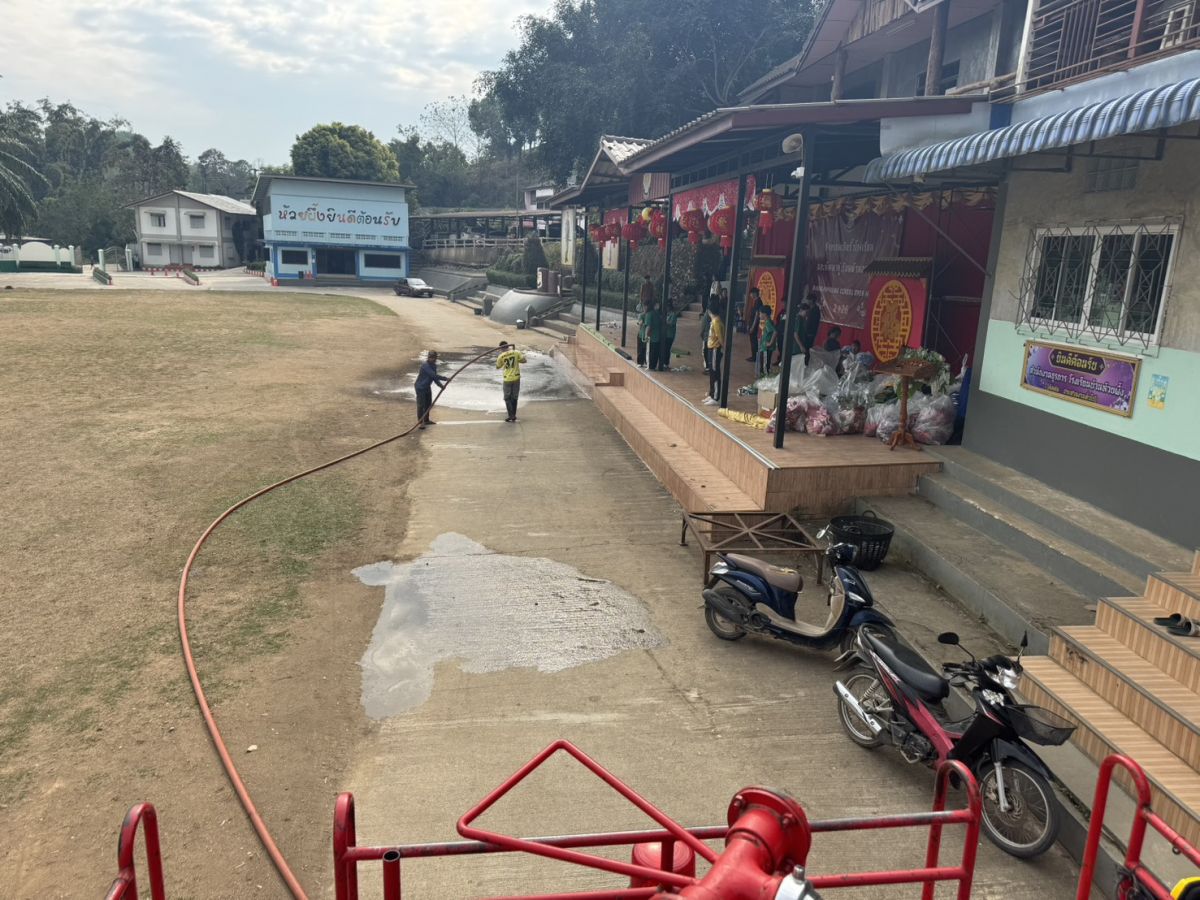 งานป้องกันออกบริการล้างลานกิจกรรมสนามกีฬาโรงเรียนบ้านห้วยผึ้ง วันที่ 23 กุมภาพันธ์ 2569 [ 15:07 น. ] เข้าชม 17 ครั้ง พิมพ์ ภาพกิจกรรม งานป้องกันออกบริการล้างลานกิจกรรมสนามกีฬาโรงเรียนบ้านห้วยผึ้ง #งานป้องกันออกบริการล้างลานกิจกรรมสนามกีฬาโรงเรียนบ้านห้วยผึ้ง.วันที่ 23 กุมภาพันธ์ 2569 เจ้าหน้าที่ป้องกันฯ อบต.แม่สลองใน ได้รับมอบหมายจากรองนายกสมชาย ดวงติ๊บ ให้นำรถบรรทุกน้ำ ลงพื้นที่ล้างถนนและลานกิจกรรมสนามกีฬาโรงเรียนบ้านห้วยผึ้ง ตำบลแม่สลองใน ตามเอกสารขอความอนุเคราะห์ฯ.#งานป้องกัน#อบตแม่สลองใน อัลบั้มภาพ