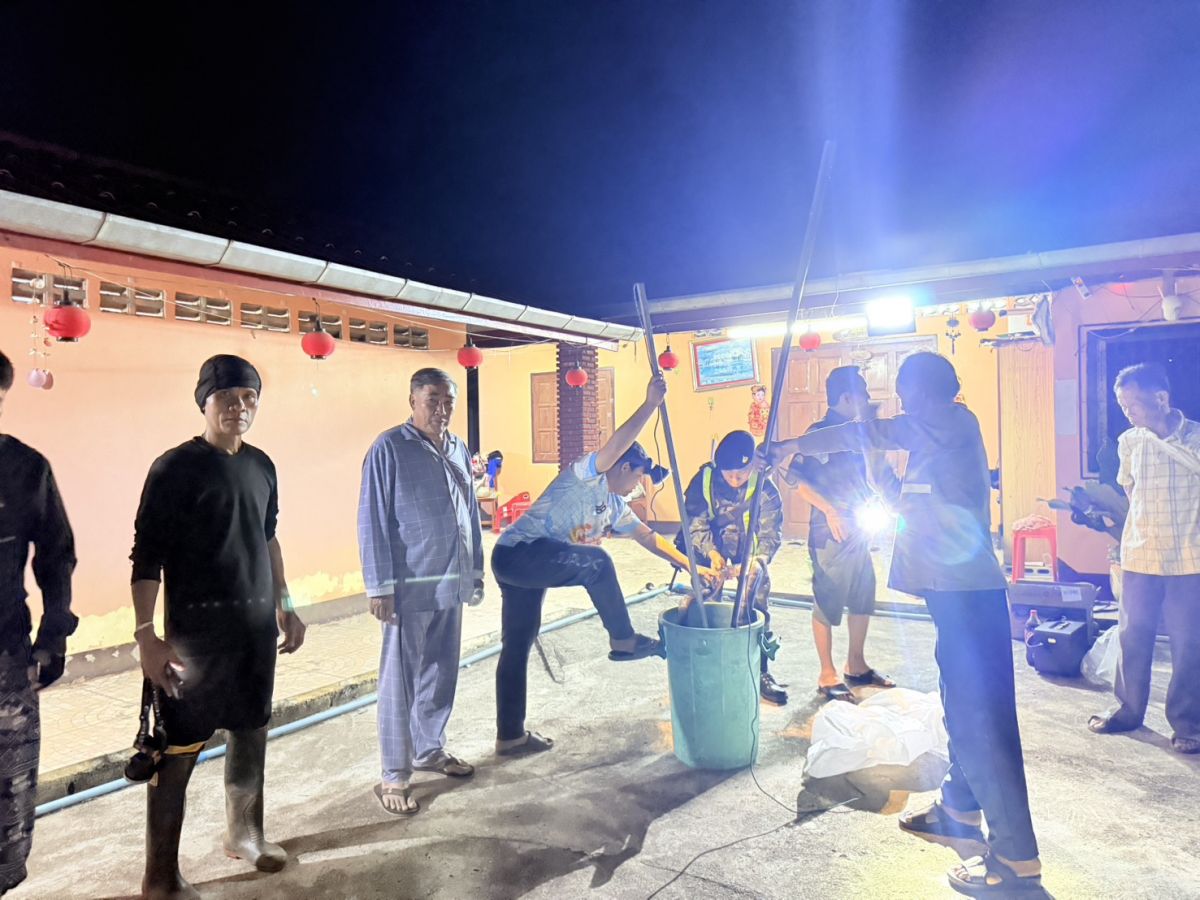 งานป้องกันฯออกช่วยเหลือเหตุงูจงอางเข้าบ้าน วันที่ 30 มีนาคม 2569 [ 09:50 น. ] เข้าชม 8 ครั้ง พิมพ์ ภาพกิจกรรม งานป้องกันฯออกช่วยเหลือเหตุงูจงอางเข้าบ้าน #งานป้องกันฯออกช่วยเหลือเหตุงูจงอางเข้าบ้าน.วันที่ 28 มีนาคม 2569 เวลา 20.00 น. ทีมงานป้องกันฯ อบต.แม่สลองใน ได้รับมอบหมายจากนายสมชาย ดวงติ๊บ รองนายกองค์การบริหารส่วนตำบลแม่สลองใน พร้อมด้วยนายศิวัฒน์ กีรติกุลธนา ที่ปรึกษานายกฯ ให้เจ้าหน้าที่ออกช่วยเหลือประชาชน จากเหตุงูจงอางเข้าบ้าน ความยาวประมาณเกือบ 3 เมตร ณ บ้านผู้ใหญ่บ้าน ม.5 เจ้าหน้าที่ป้องกันฯ ร่วมกับ ทหาร ส.อบต ม.5 และชาวบ้านได้ช่วยกันจับไปปล่อยเข้าสู่ ป่าธรรมชาติเรียบร้อยแล้ว .#งูเข้าบ้าน#งานป้องกันฯ#อบตแม่สลองใน อัลบั้มภาพ