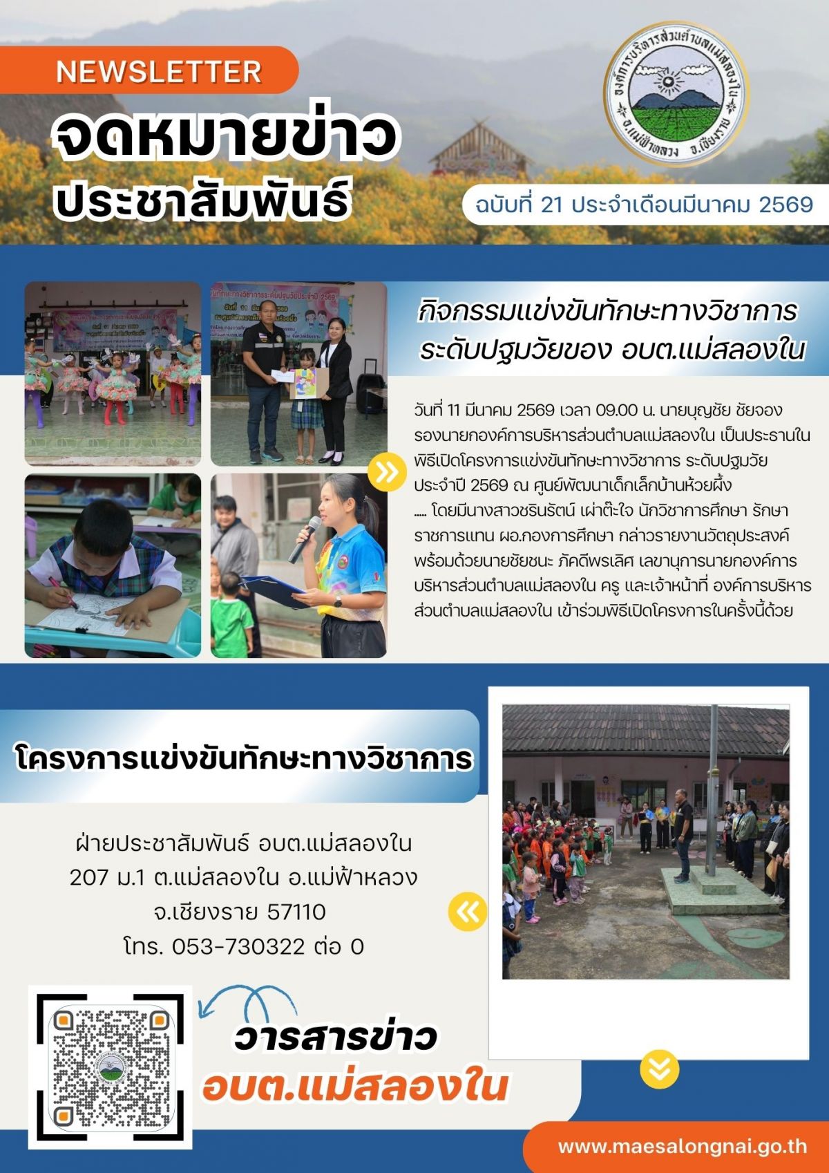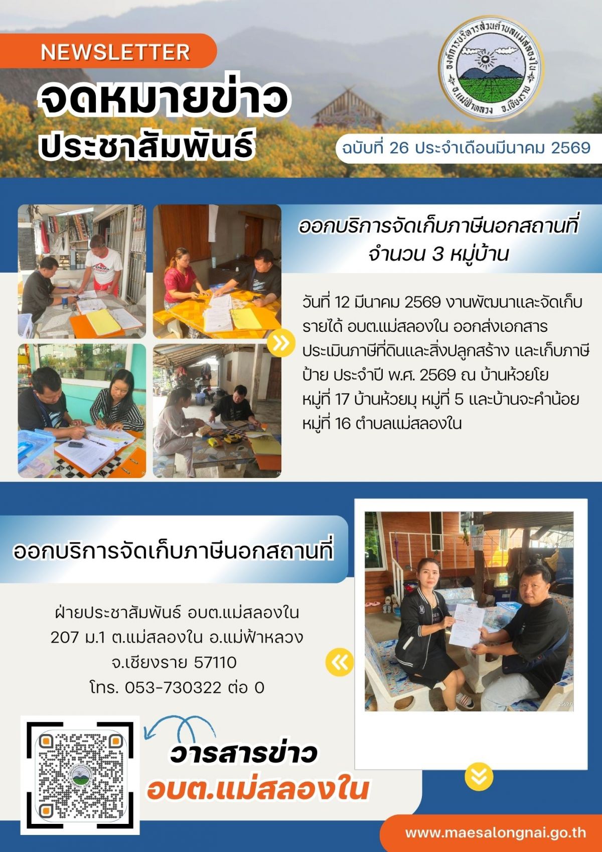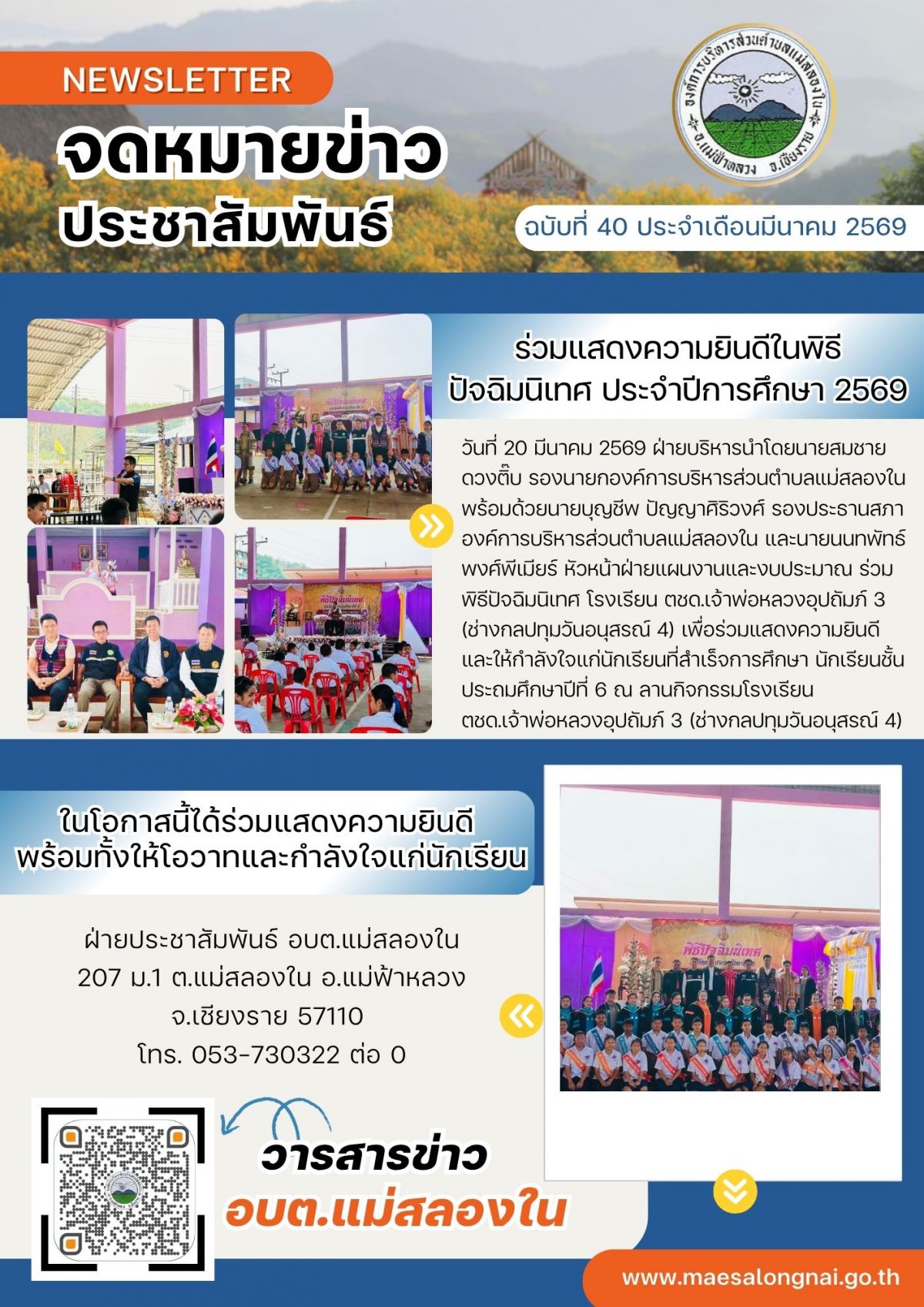 วารสารประชาสัมพันธ์ประจำเดือนมีนาคม 2569 วันที่ 01 เมษายน 2569 [ 12:04 น. ] เข้าชม 16 ครั้ง พิมพ์ วารสารประชาสัมพันธ์ วารสารประชาสัมพันธ์ประจำเดือนมีนาคม 2569 อัลบั้มภาพ